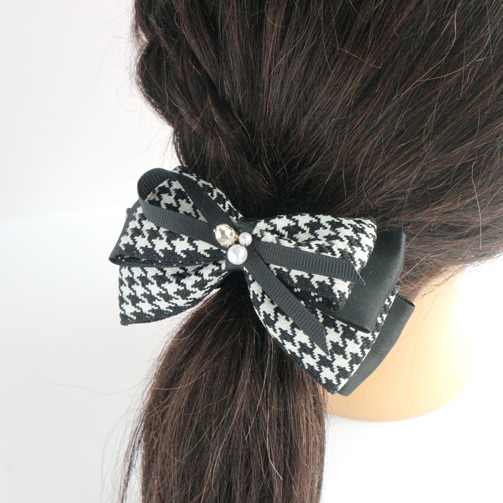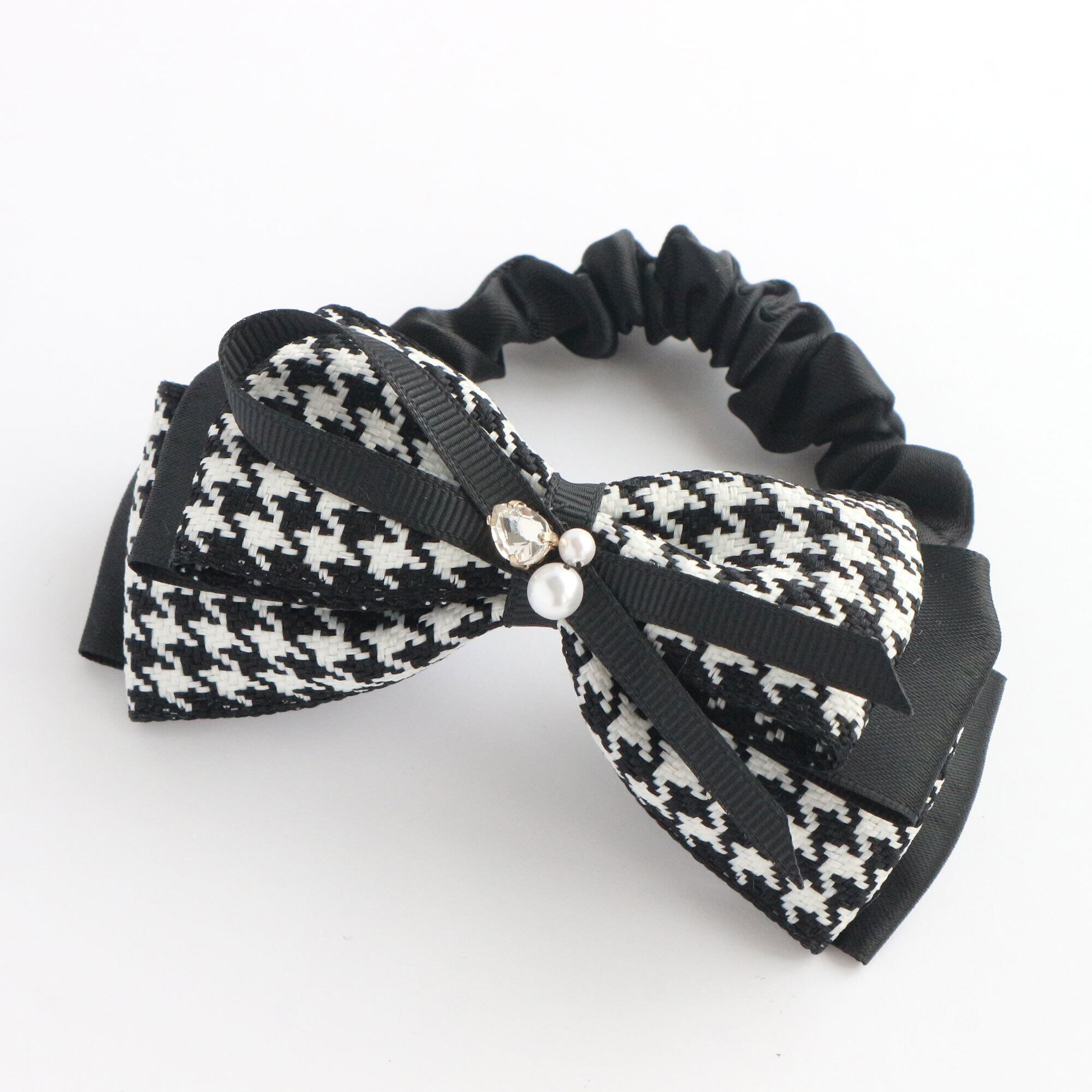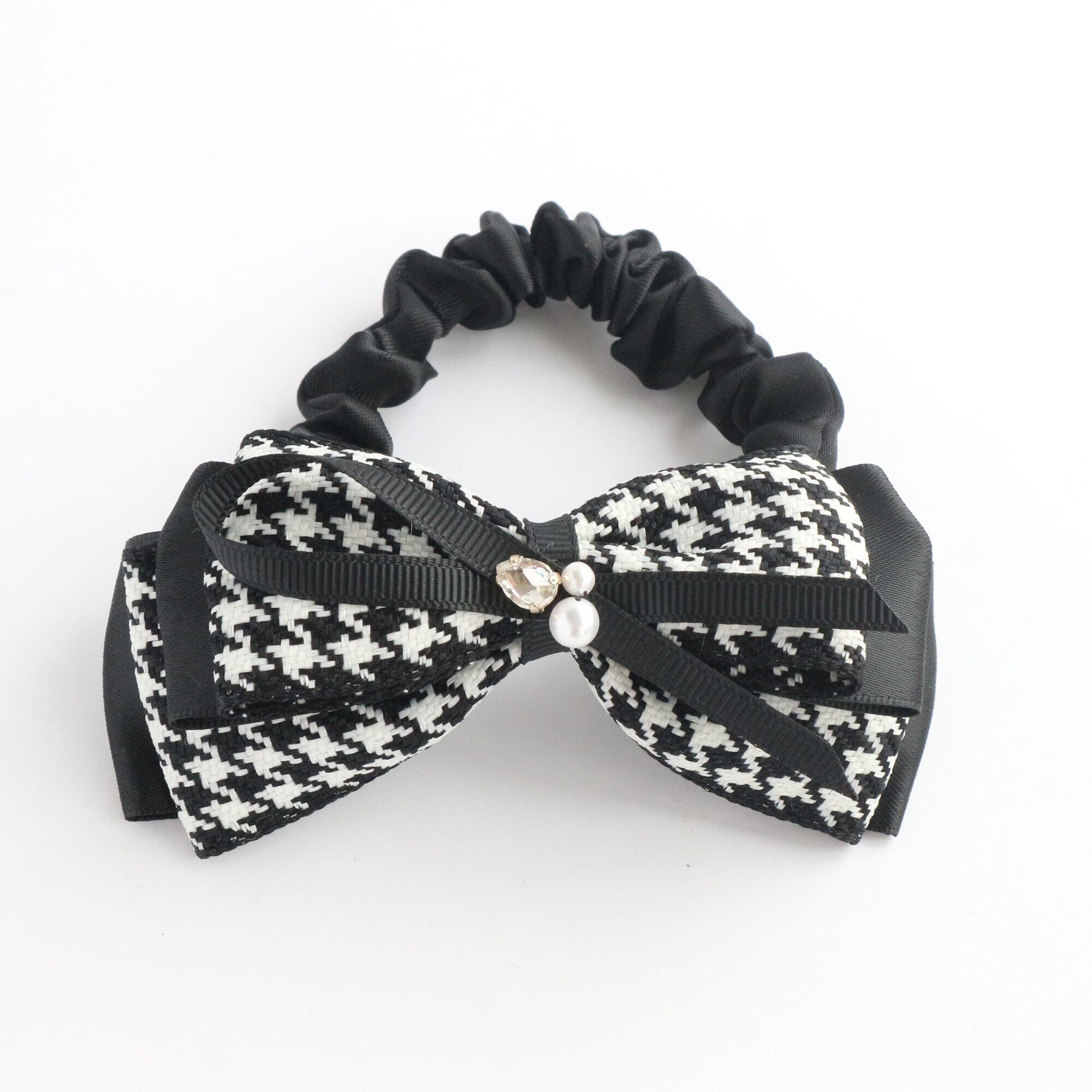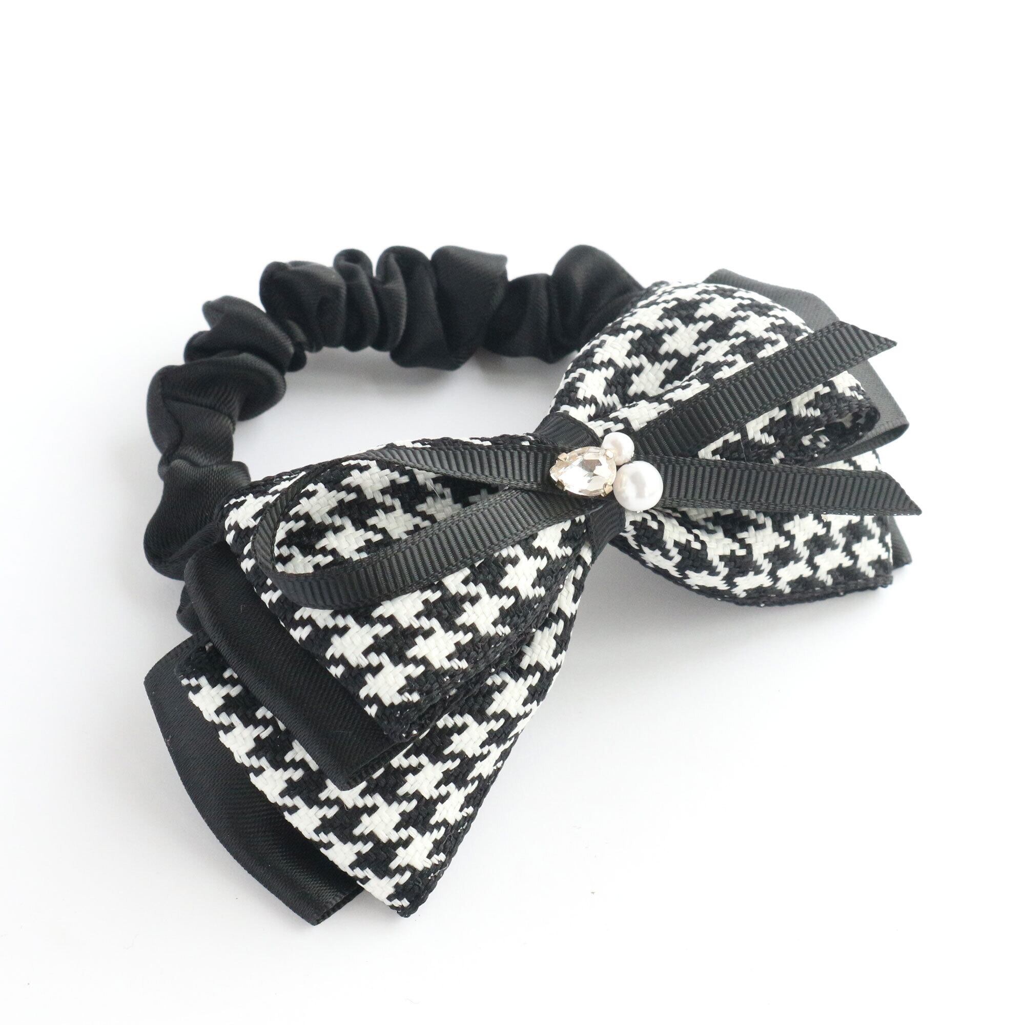 千鳥格子 リボンの大人可愛い上品シュシュ 黒 ブラック クリスマス 卒業式 入学式 冬 ギフト
