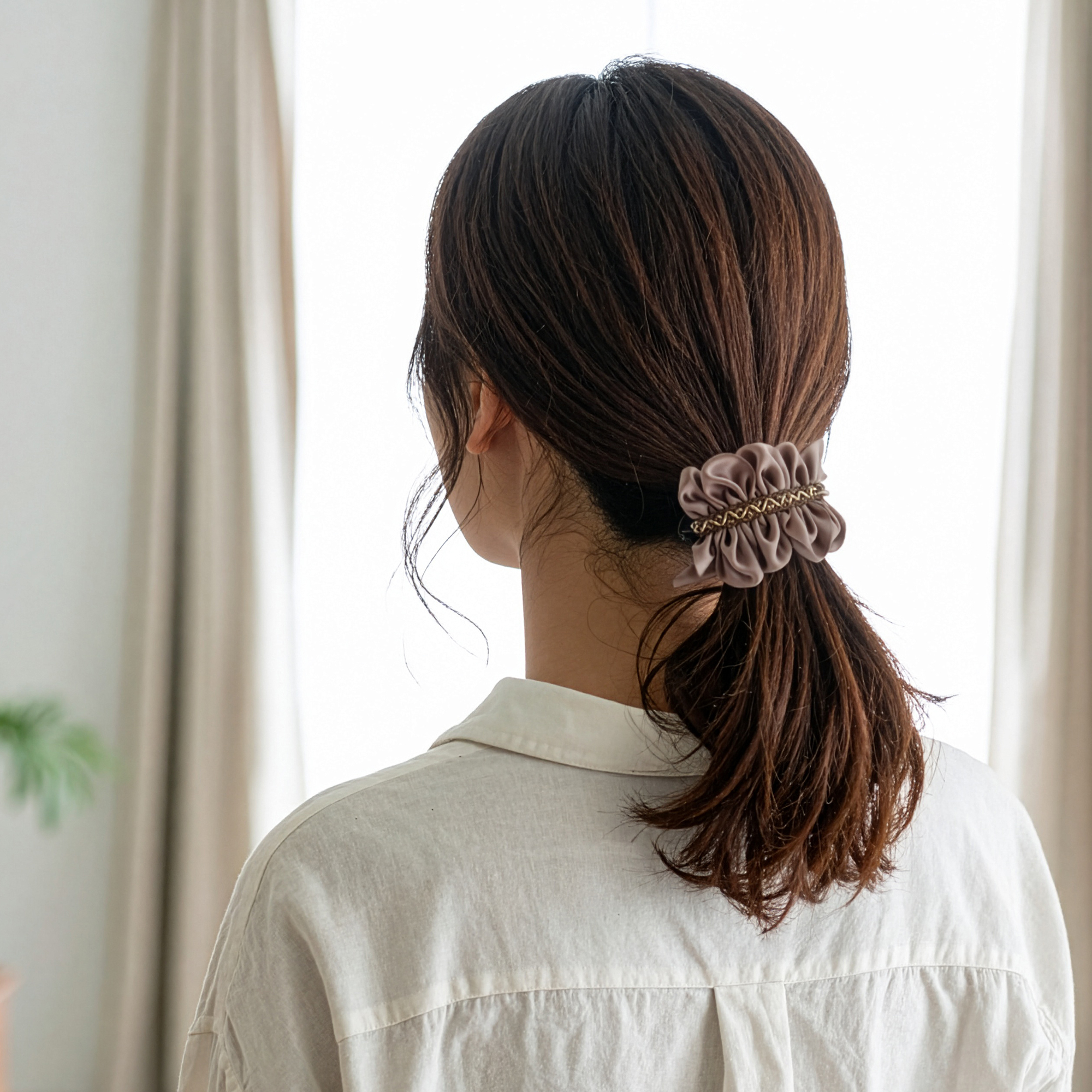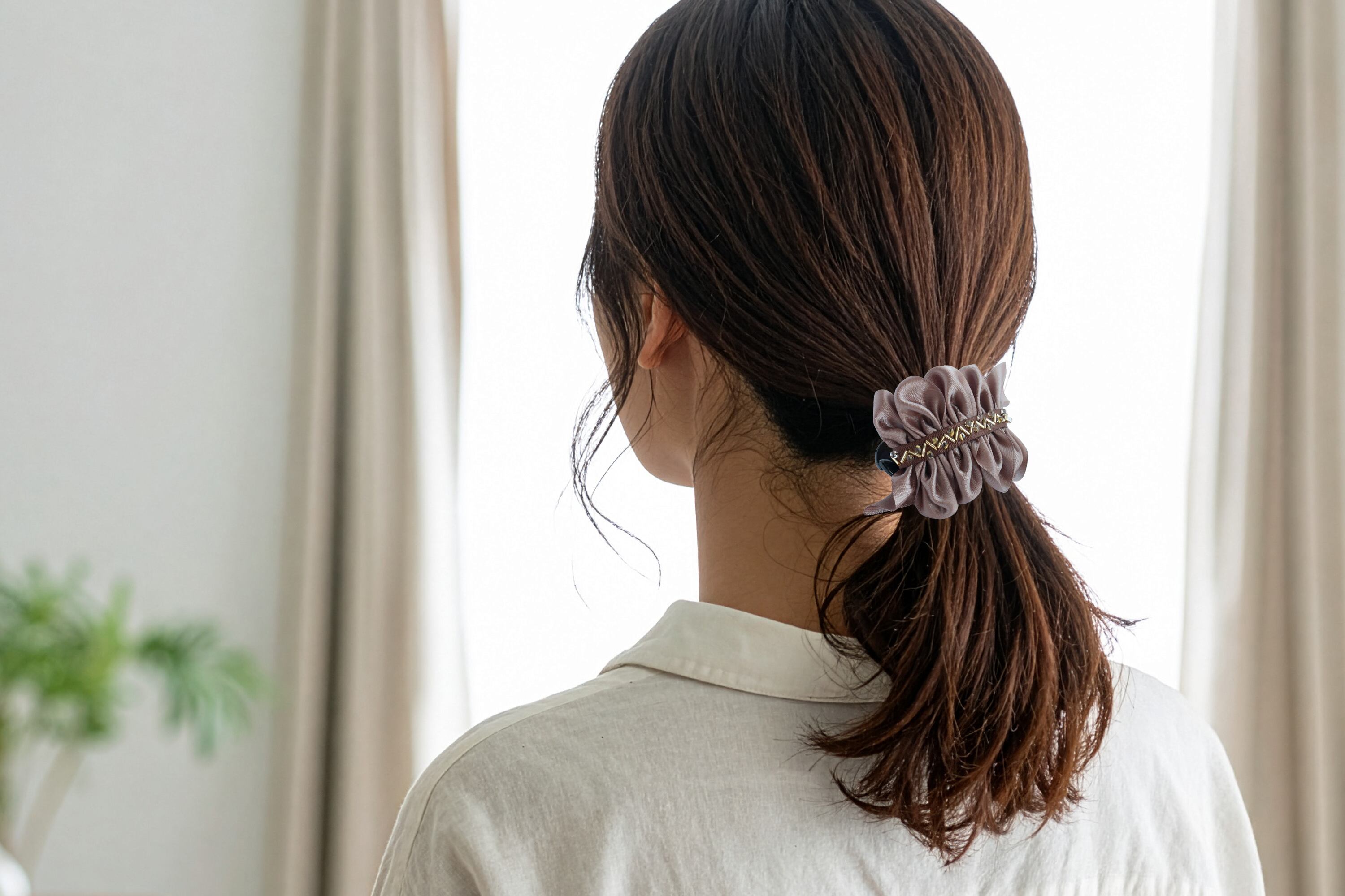 デスクワーク中や家事の合間でも、しっかりと髪をまとめてくれるので、ストレスフリーに一日を過ごせます。