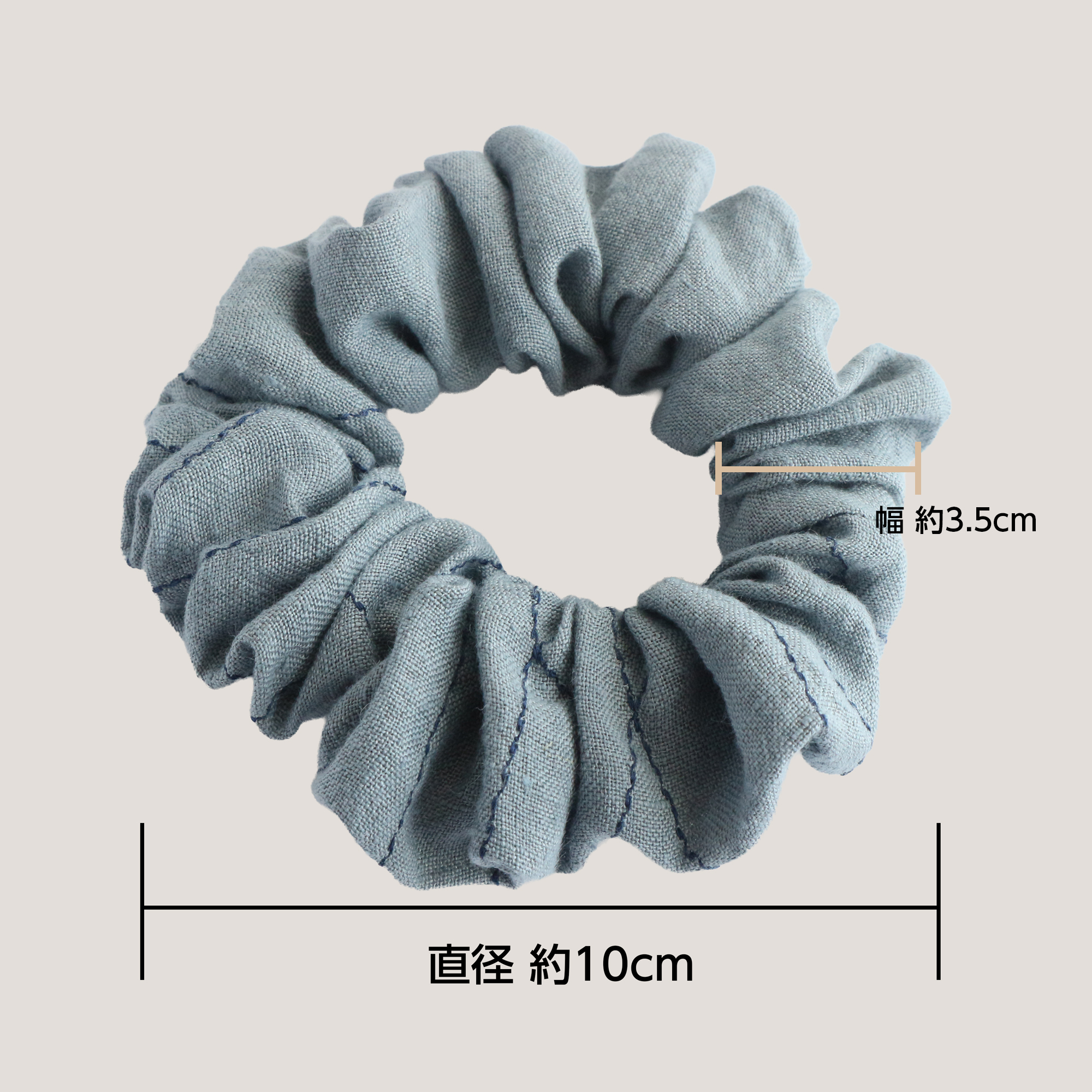 ミシン刺繍を施したスモーキーサックスのベルギーリネンシュシュです。
