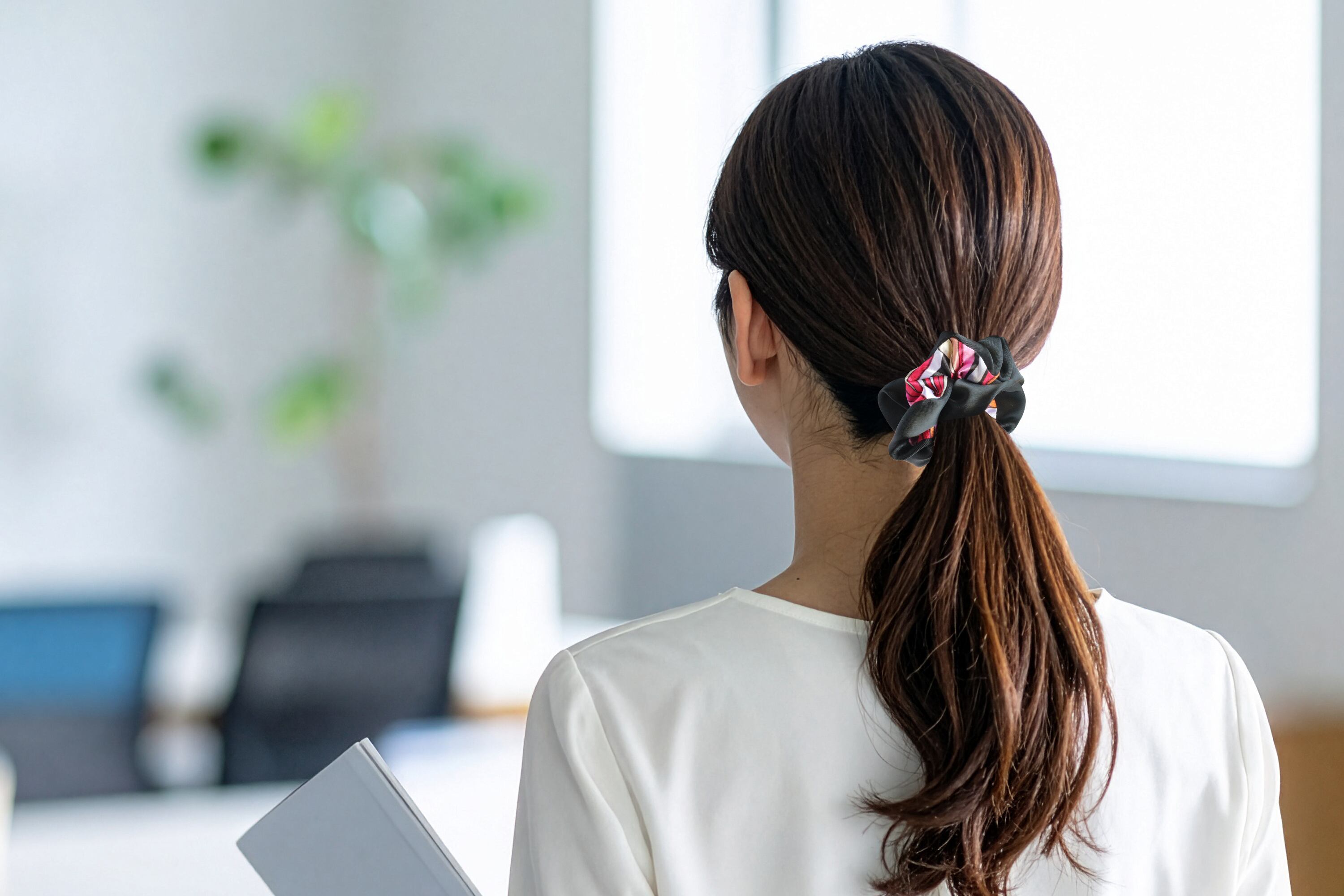 カチッとしたヘアスタイルから、少し柔らかなまとめ髪に結び直したい時