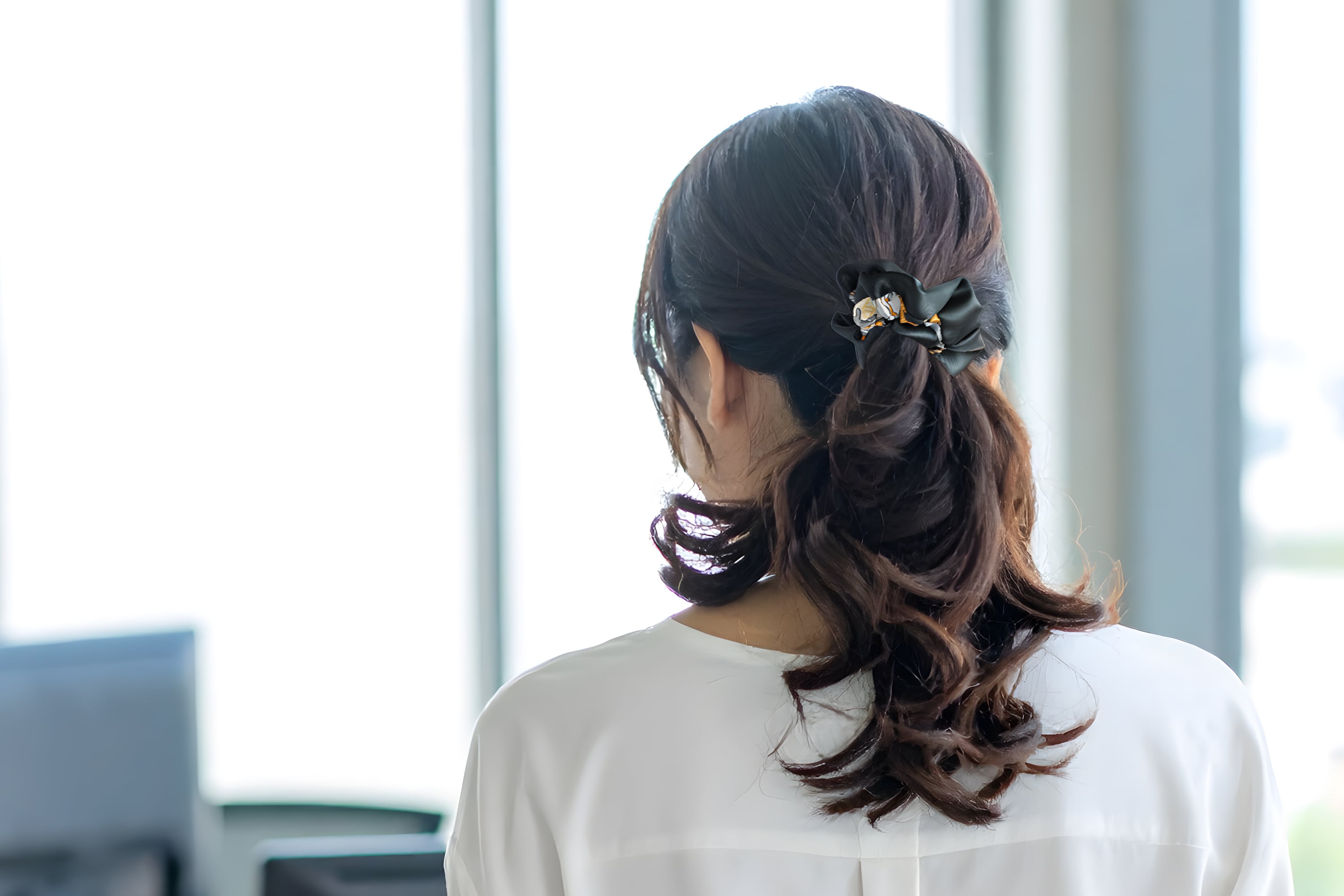 カチッとしたヘアスタイルから、少し柔らかなまとめ髪に結び直したい時