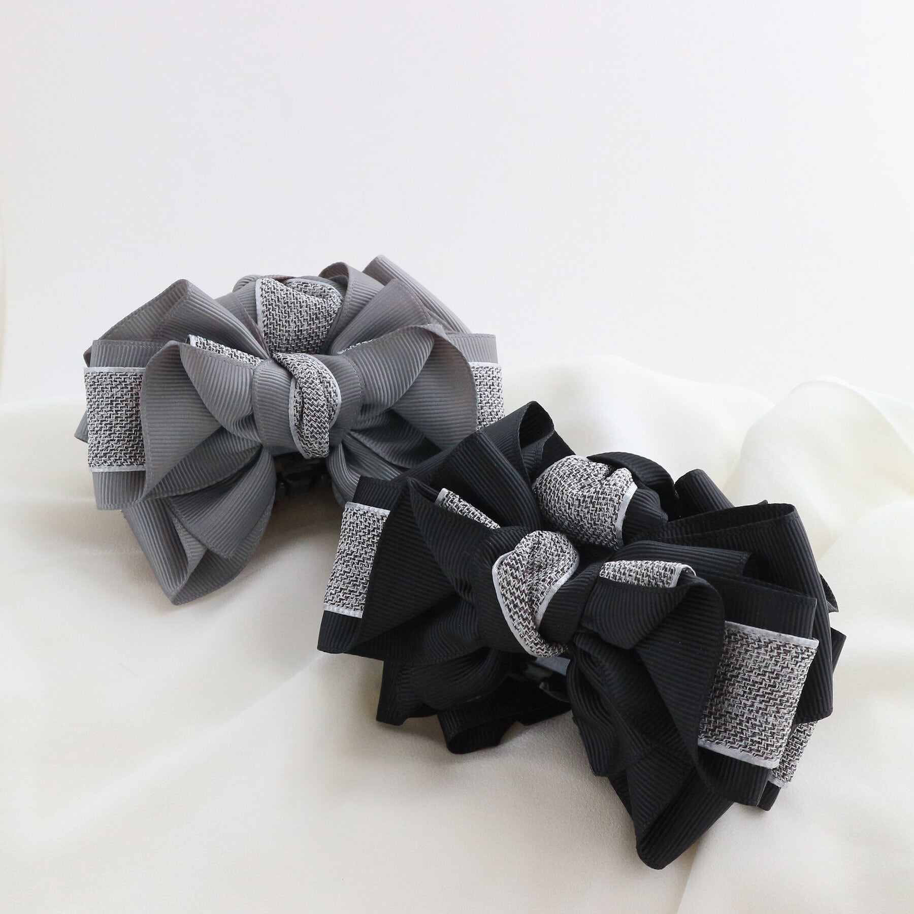 【選べる2サイズ】リネンリボンとグログランリボンを使ったふんわり大人のバンスクリップ(グレー)