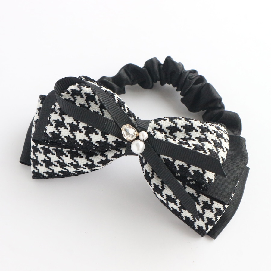 大人可愛い千鳥格子としっかりとハリのあるグログランリボンを使用したなトリプルリボンのヘアゴムです。