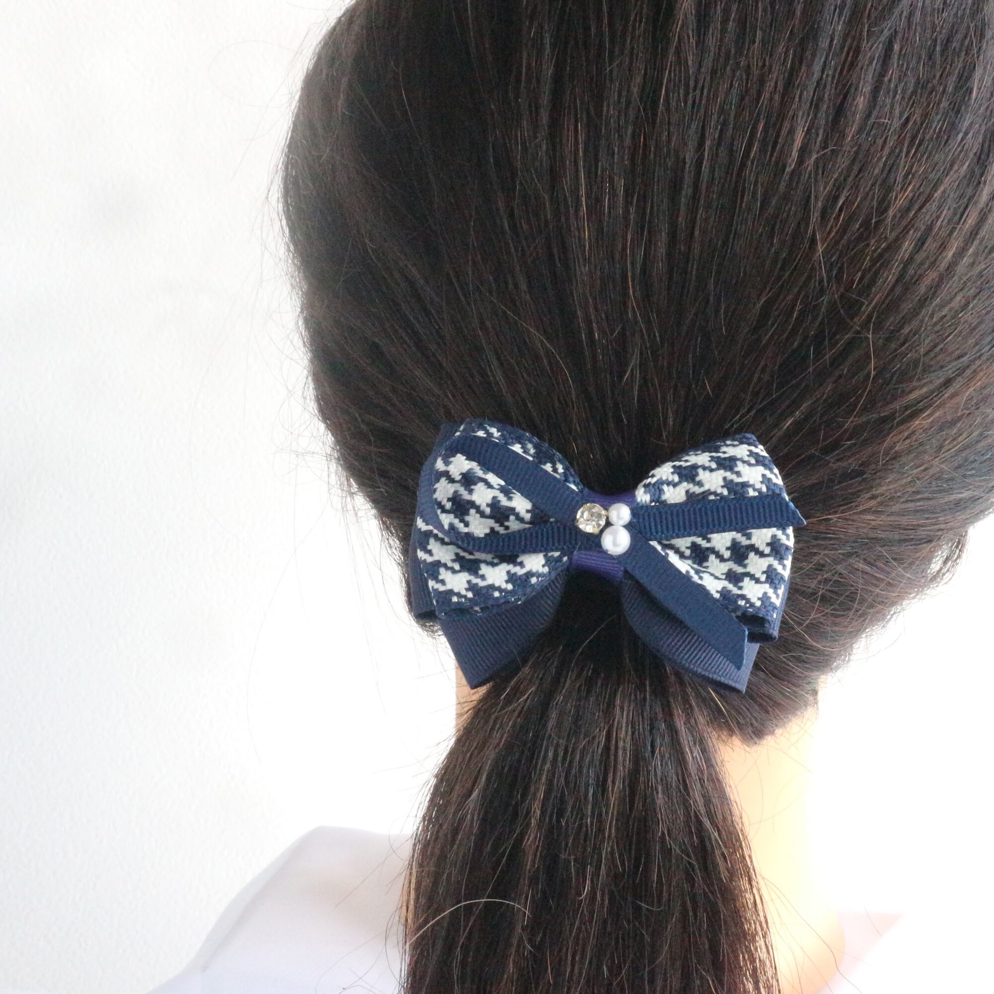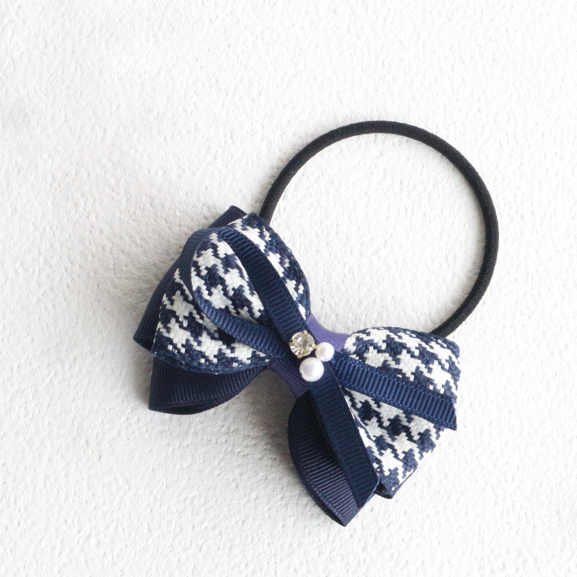 千鳥格子のリボンと組み合わせたヘアゴムx1