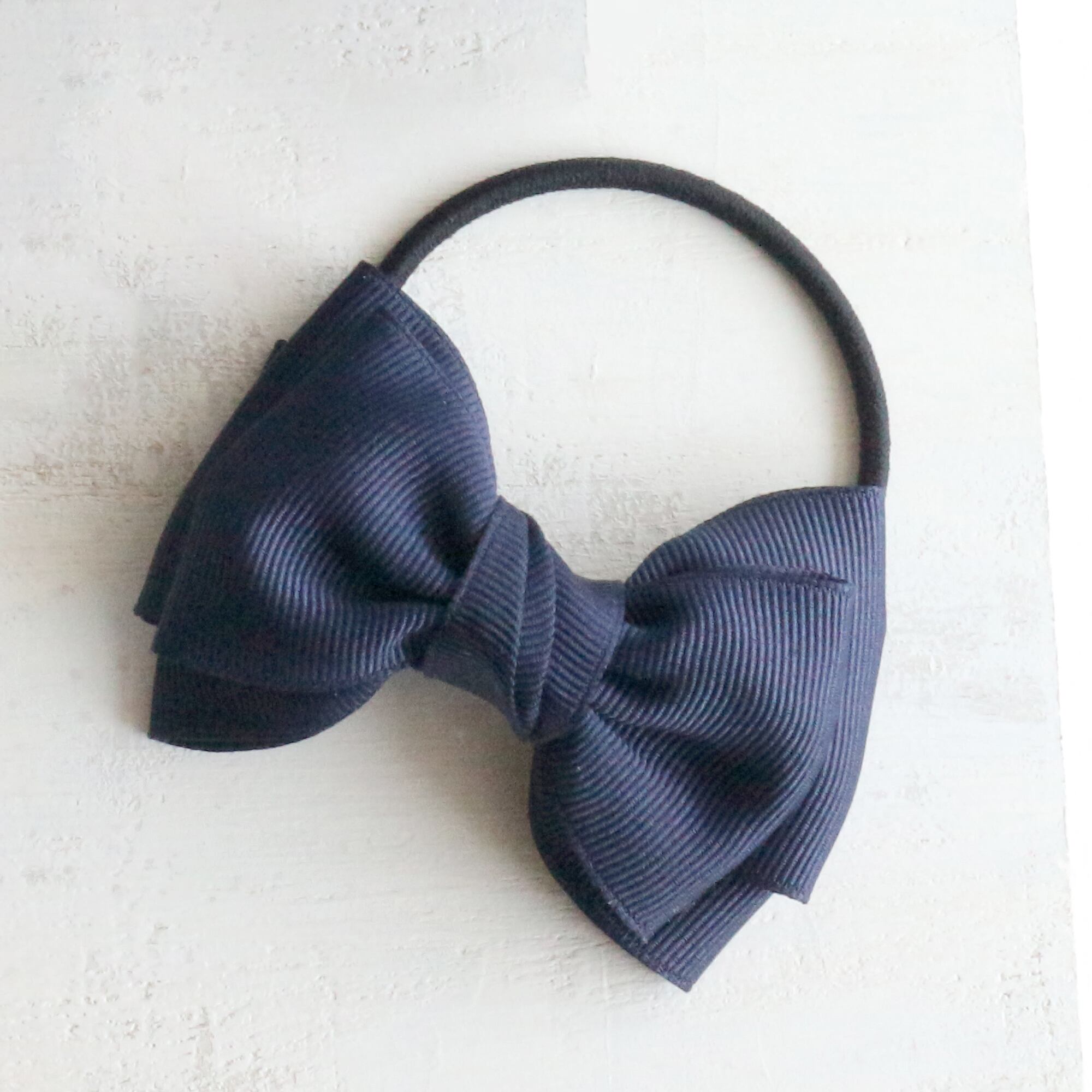 しっかりとハリのある紺色グログランリボンを使用し、ほどよいボリューム感にこだわったシンプルなトリプルリボンのヘアゴム3個セットです。